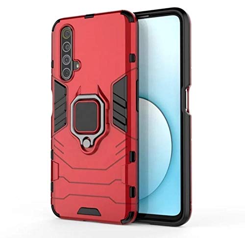 Armor - ريلمي اكس 50 برو جراب ايرون مان ضد الصدمات مزود بدبلة معدنية احمر
