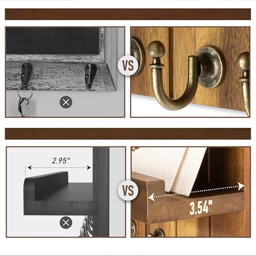 - [سهل التركيب] مصنوع من مواد خشب الأكاسيا، منظم البريد المعلق هذا لديكور غرفة النوم قوي ومصمم ليدوم طويلاً. يسمح لك التصميم السهل المثبت على الحائط بتركيبه في دقائق مع ثبات آمن. تحتوي الخطافات المتينة على المفاتيح أو الملحقات أو الأشياء الصغيرة اللطيفة دون تمايل، مما يجعلها موثوقة للاستخدام اليومي.