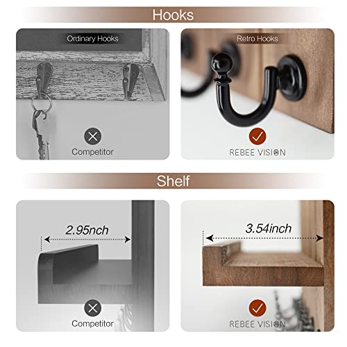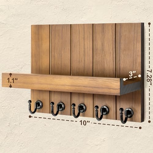 Rebee Vision - حامل مفاتيح زخرفي للجدار، علاقات مفاتيح ريفية مع رف ومنظم للبريد للتعليق على الحائط، لديكور المنازل الريفية وغرفة المعيشة، ضروري للمنزل الجديد من ريبي فيجن، بني، مقاس 9 × 25.4 × 18.5 سم