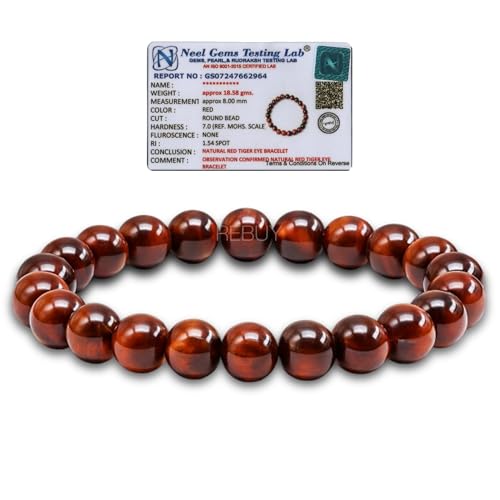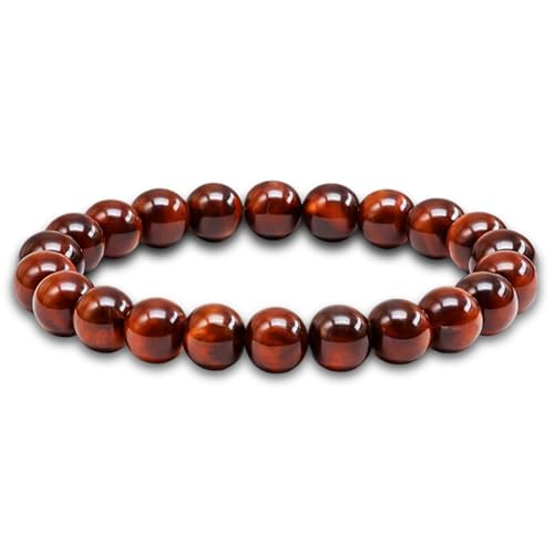 REBUY - ريباي سوار حجر عين النمر الاحمر والكريستال الطبيعي العلاجي للرجال والنساء لون احمر حجم الخرزة 8 ملم 7 انش كريستال