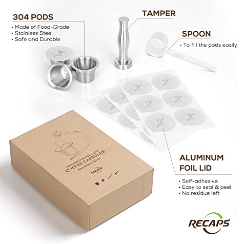 RECAPS - فلاتر قابلة لاعادة الملء من الستانلس ستيل من ريكابس، كبسولات اسبرسو قابلة لاعادة الاستخدام، متوافقة مع ماكينة قهوة نسبرسو
