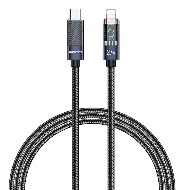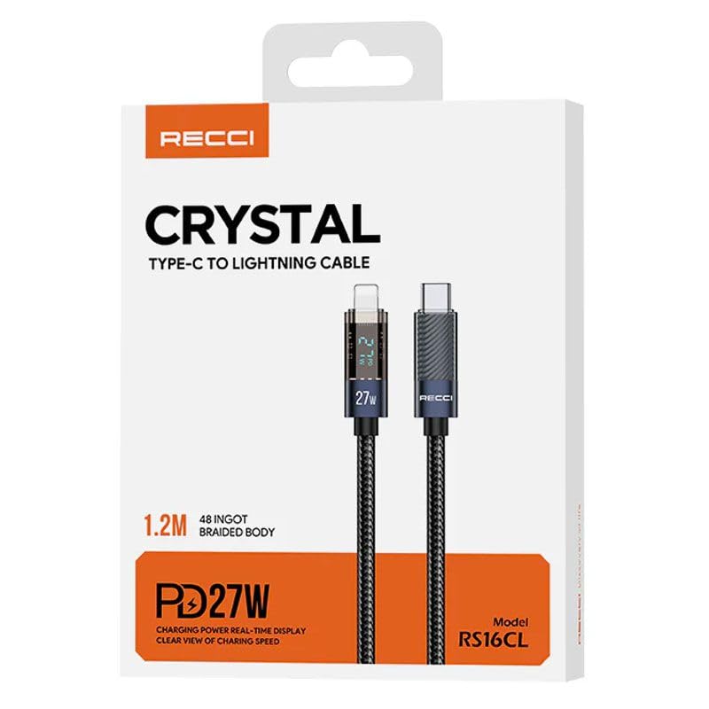 RECCI - كابل شحن ومزامنة كريستال لايتنينج RS-16CL بقوة 27 وات من ريتشي، 1.2 م - لون أسود
