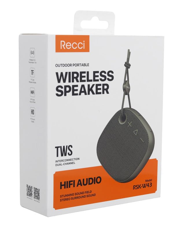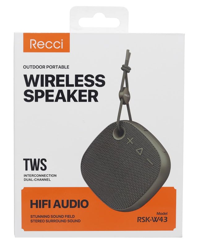 RECCI - مكبر صوت لاسلكي محمول مع بطارية قابلة لإعادة الشحن 1200 مللي أمبير في الساعة وكابل نوع سي RSK-W43 من ريكسي، لون أخضر