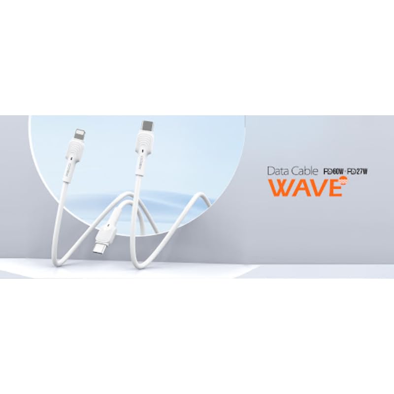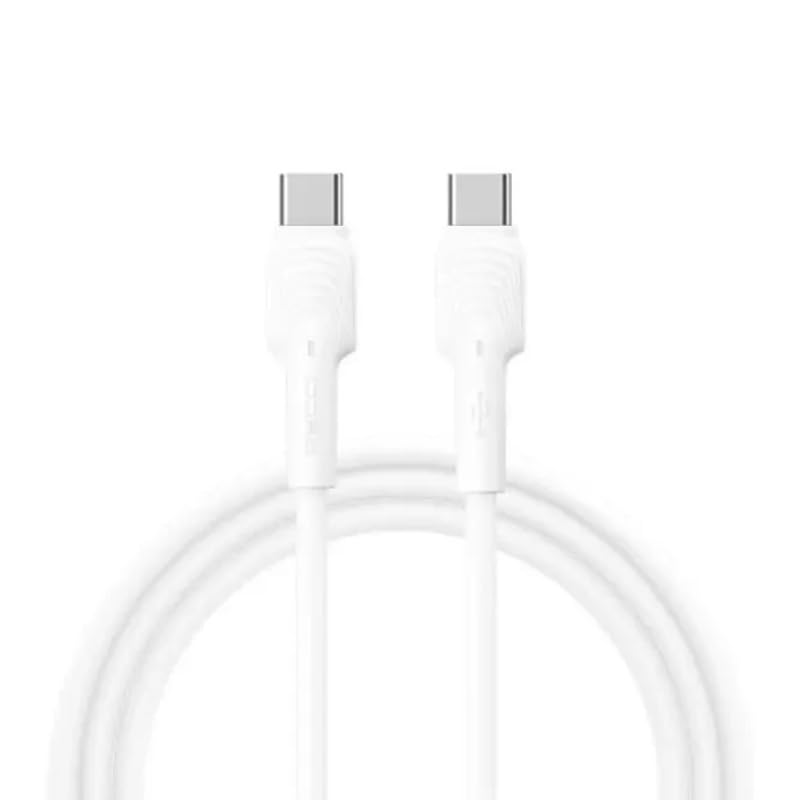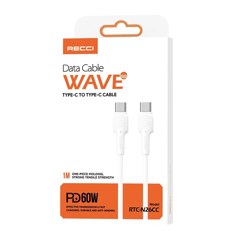 Recci, - كابل شحن شيل RTC-N26CC شحن سريع بي دي 60 وات بطول 1 متر C إلى C للشحن عالي الطاقة من ريتشي - لون أبيض