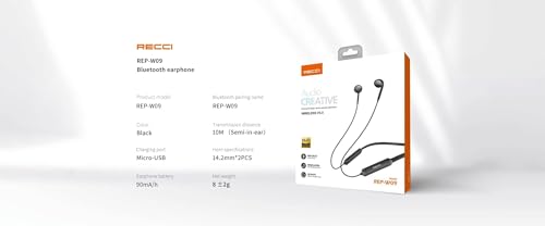 Recci - سماعة راس لاسلكية ريتشي ريب -W09 ، 2725609768905، أسود، داخل الأذن