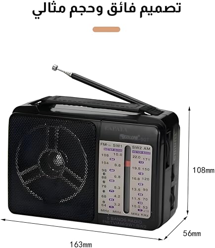 - صُمم هذا الراديو بكفاءة عالية، مما يقلل الحاجة إلى إعادة الشحن المتكرر أو البطاريات ذات الاستخدام الواحد، ويقلل التكاليف على المدى الطويل ويعزز الاستخدام المستدام. يجمع تصميمه المتين بين المتانة والعملية، مما يجعله خيارًا مثاليًا للاستخدام اليومي في المنازل أو أماكن العمل أو الأماكن الخارجية.