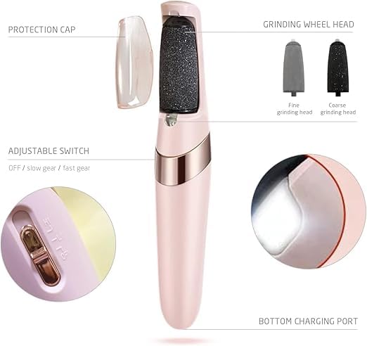 Generic - مزيل مسامير القدم قابل لاعادة الشحن مع رأسين، مزيل مسامير القدم والجلد الميت المحمول، جهاز باديكير كهربائي للعناية بالقدم