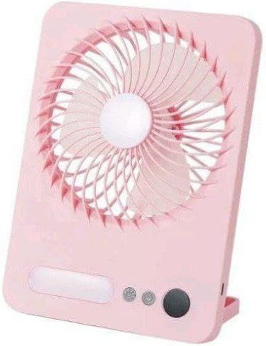 Generic - مروحة مكتب قابلة لإعادة الشحن، مروحة كهربائية صغيرة محمولة مع ضوء LED للاستخدام في المكتب والسيارة وغرفة النوم، 3 سرعات قابلة للتعديل، تدفق هواء هادئ، شحن USB، مروحة طاولة صغيرة (بينك)