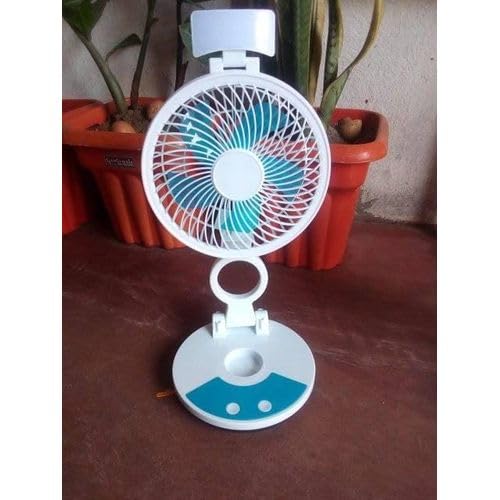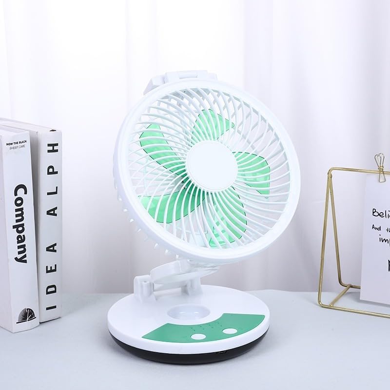 Generic - مروحة مكتب مدورة قابلة للشحن بكشاف بمنفذ USB تبريد قوي وتصميم عصري بإضاءة ليد قابلة للتعديل 360 درجة تحكم سهل- متعددة الألوان