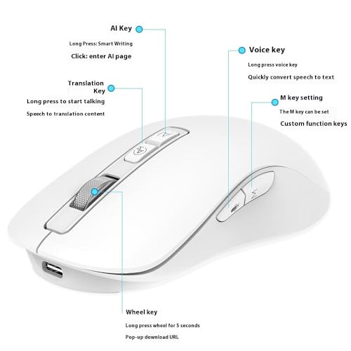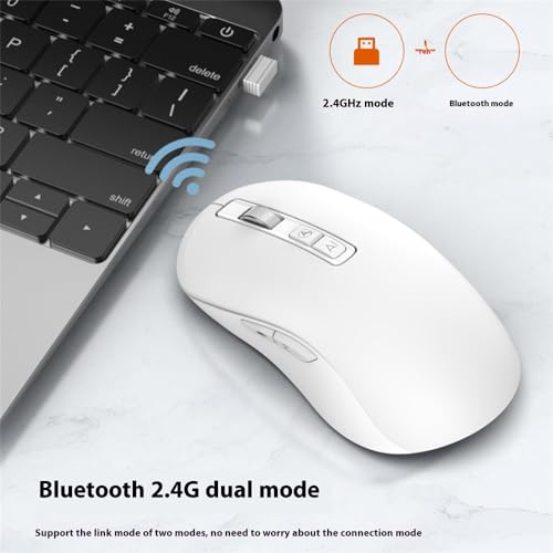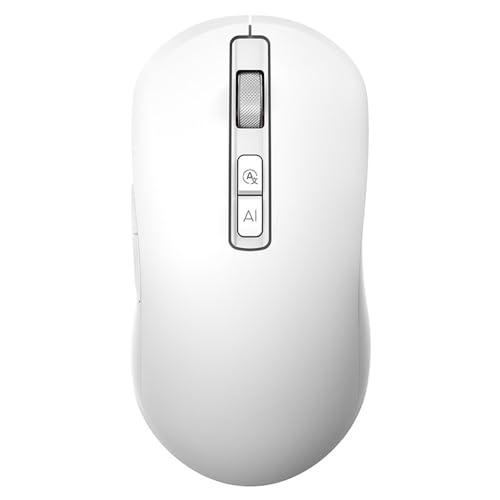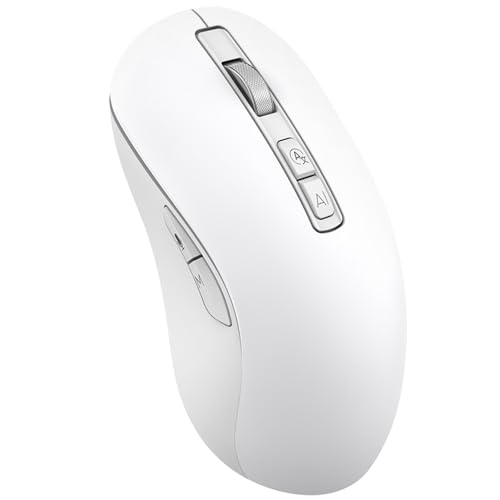 Generic - ماوس لاسلكي قابلة للشحن مزدوج الوضع بتقنية البلوتوث / 2.4 جيجاهرتز مع ميكروفون – زر تشغيل/إيقاف – دقة 4000 نقطة في البوصة – تصميم خفيف ومريح لمكتب الأعمال، اللون: أبيض