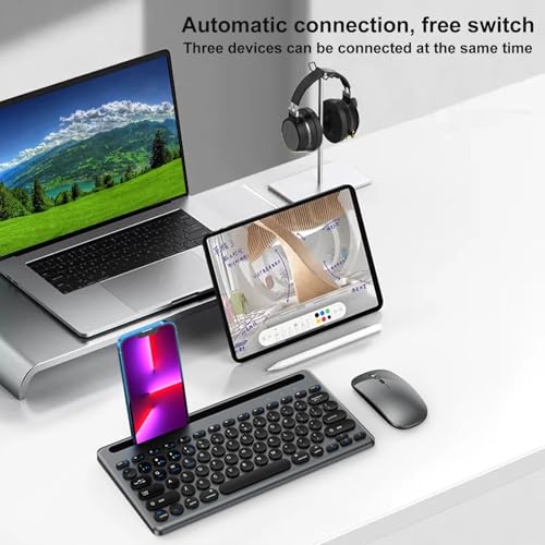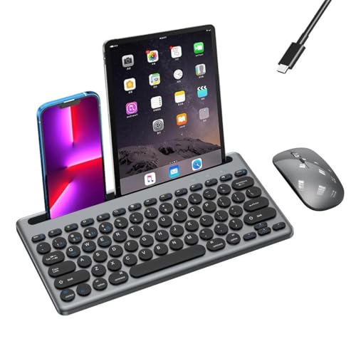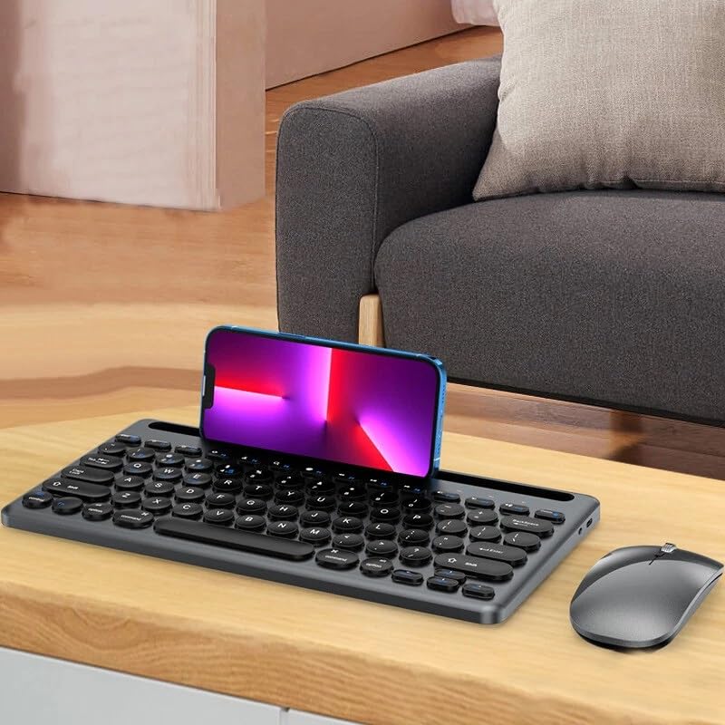 - مجموعة كيبورد وماوس رفيعة قابلة لإعادة الشحن بوضع مزدوج مع حامل موبايل