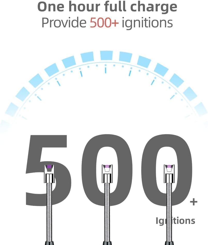 - قابلة لإعادة الشحن عن طريق منفذ USB: هذه الولاعة تستخدم لمرات متعددة وتدوم طويلًا، ببساطة قم بإعادة الشحن باستخدام كابل USB المرفق للاستخدام المتكرر.