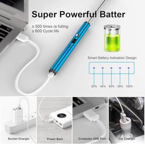 Generic - ولاعة بلازما كهربائية قابلة لإعادة الشحن، للمطبخ والشواء والشموع والتخييم وموقد الغاز، شحن USB، مقاومة للرياح بدون لهب، رقبة مرنة 360°، شاشة ليد للبطارية، (أزرق)