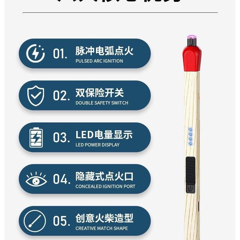 - هيكل معدني فاخر بتصميم عصري: ولاعة أنيقة على شكل عصا الثقاب مصنوعة من معدن عالي الجودة تجمع بين الأناقة والمتانة وسهولة الحمل، مثالية كملحق أنيق للمنزل أو المطبخ أو الاستخدام الخارجي.
