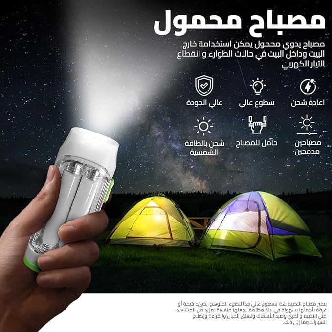 - مصباح بإضاءة LED يستخدم لحالات الطوارئ يمكنك إعادة شحنه: لاتخشَ الظلام مرة أخرى باستخدامك لمصباح LED حيث يمكنك شحنه مرة أخرى، فهو مثالي لحالات الطوارئ وانقطاع التيار الكهربائي.