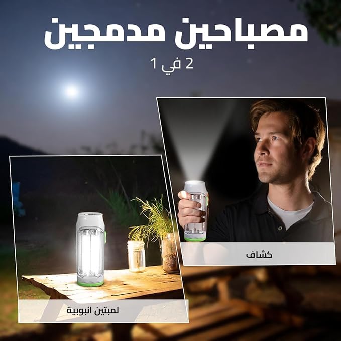 - أوضاع مزدوجة: يتميز بوجود وضع ساطع ووضع خافت يمكنك التبديل بينهما بما يتلاءم مع احتياجاتك للإضاءة، في حال كنت تقوم بالتخييم أو القراءة أو تنتقل عبر محيط مظلم.