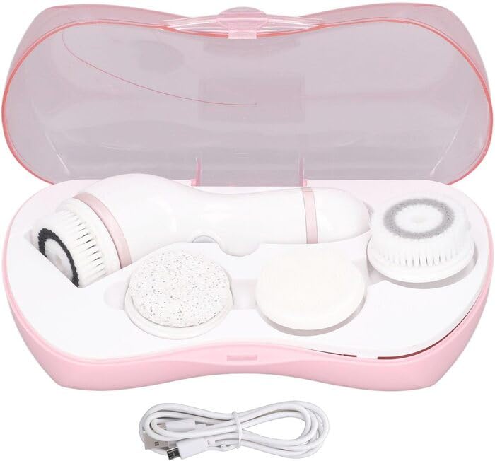 Generic - مجموعة فرش دوارة لتنظيف الوجه قابلة لإعادة الشحن مع 4 رؤوس فرشاة تقشير