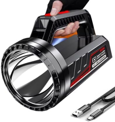 Generic - مصباح كشاف ليد قابل لإعادة الشحن، مصباح تخييم مقاوم للماء، كشاف USB محمول مع مقبض، أسود 1200 وات