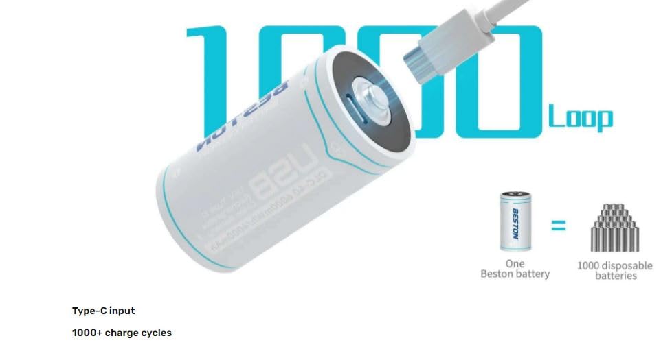 Generic - بطارية ليثيوم قابلة لإعادة الشحن 1.5 فولت مقاس D؛ USB نوع سي - عبوة من 2