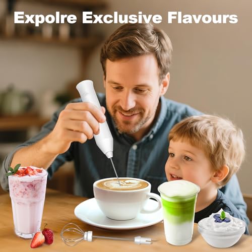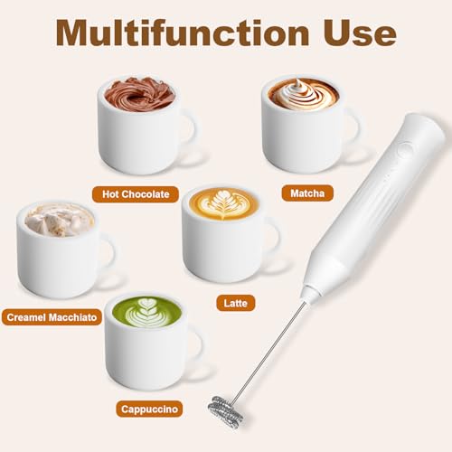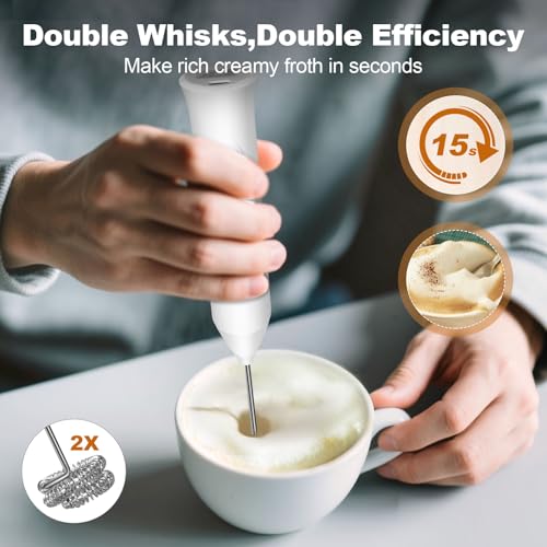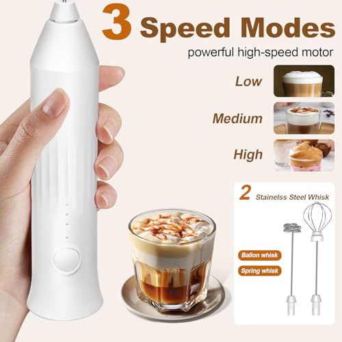 Wewymewo - اداة صنع رغوة الحليب قابلة لاعادة الشحن، عصا كهربائية مع 2 مضرب ستانلس ستيل و3 سرعات، خلاط مشروبات محمول باليد للقهوة واللاتيه والكابتشينو والماتشا ومخفوق البروتين