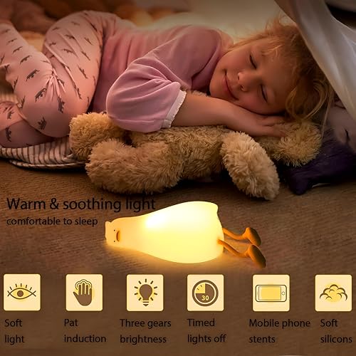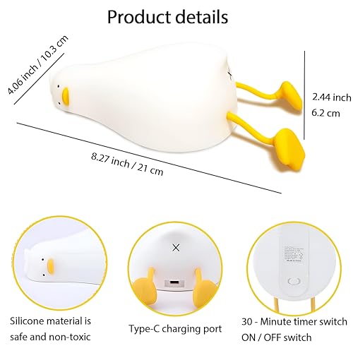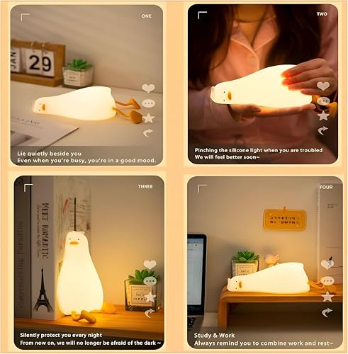 Generic - مصباح سيليكون قابل لإعادة الشحن، مصباح ليلي لطيف على شكل بطة مع 3 أوضاع خافتة، توهج ناعم لغرفة نوم الأطفال أو الحضانة أو طاولة الدراسة لنشر الراحة والبهجة من خلال الإضاءة الهادئة
