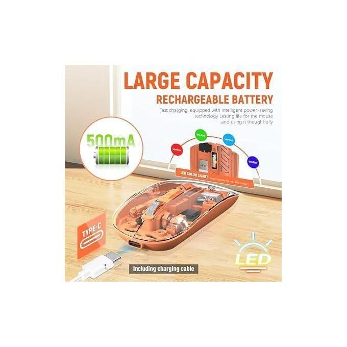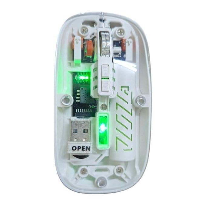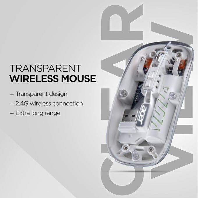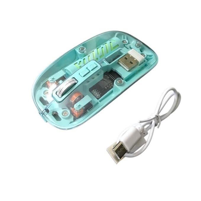 - التصميم الشفاف: ماوس لاسلكي بتصميم شفاف عصري يكشف المكونات الداخلية مع إضاءة LED خضراء جذابة