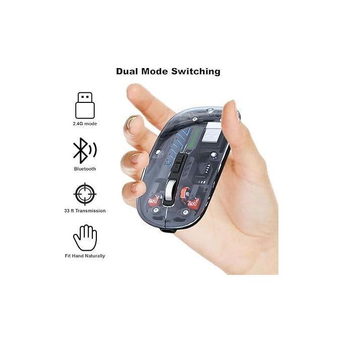 Generic - ماوس لاسلكي شفاف قابل لإعادة الشحن، بلوتوث 5.2 و 2.4 جيجا، 1600 DPI، مع مستقبل USB، بطارية LED، نقر بدون ضوضاء (ابيض)