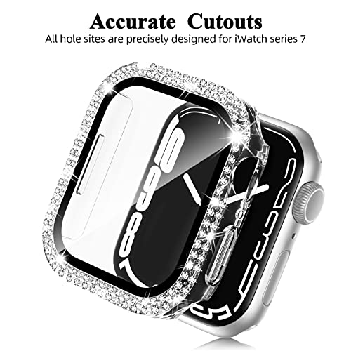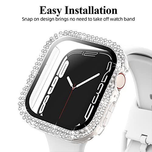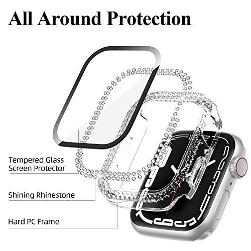 Recoppa - جراب بلينج مع شاشة حماية مقاومة للصدمات من البولي كربونات الصلب بتصميم كريستال والماس وحجر الراين، حماية كاملة لوجه ساعة ابل اي ووتش 45 ملم سلسلة 7 من ريكوبا، قطعتين (45 ملم، شفاف/روز جولد)