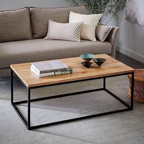 Generic - طاولة قهوة مستطيلة 100×45 - بتصميم صناعي حديث مع سطح خشبي وإطار معدني من لايون هوم