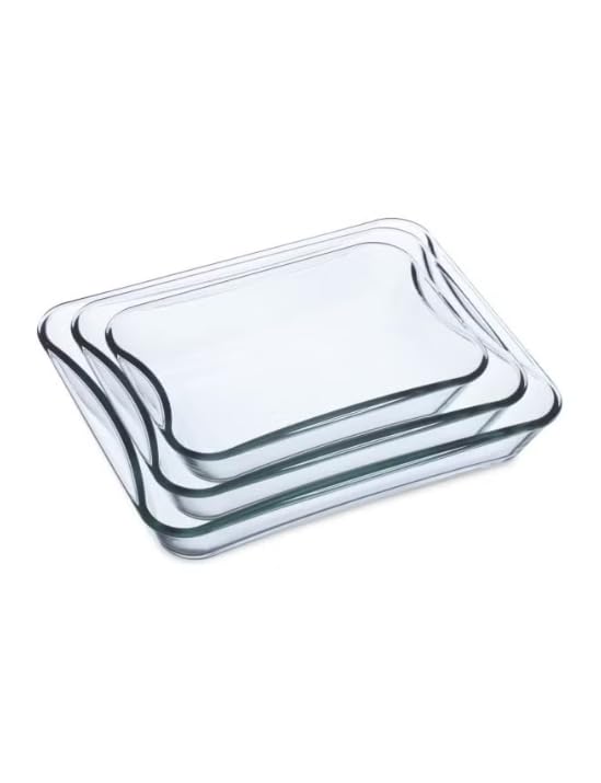 generic - طقم كسرولة زجاجية مستطيلة مقاومة للحرارة من 3 قطع (مقاسات: 3.5 لتر - 2.5 لتر - 1.5 لتر) موديل S تشيكي