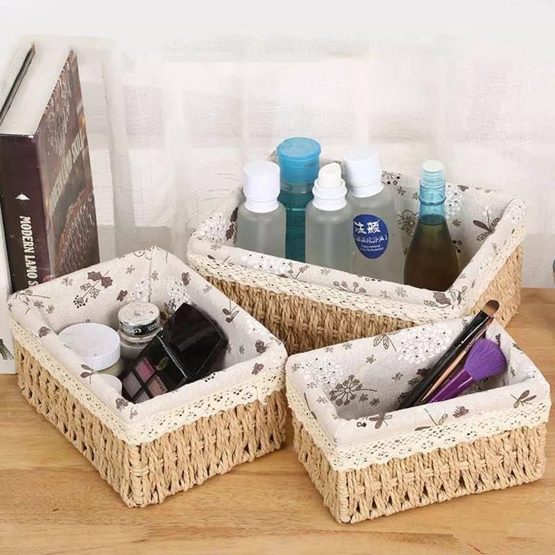 Generic - طقم باسكت ومنظم مستطيل 3 قطع ؛ تصميم أنيق من خامة شبيهة بالرتان ؛ مبطن بقماش كتان متين ؛ متعدد الاستخدام للتخزين والتنظيم في الحمام أو الغرف