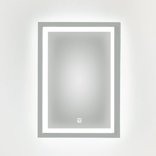 Generic - مرآة حمام مستطيلة مع إضاءة ليد ابيض، 50 × 70 سم