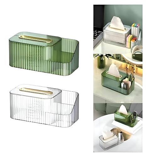 Generic - غطاء علبة مناديل زجاجية مستطيلة - حامل علبة مناديل ذهبية أنيقة، حامل مناديل وجه عصري لخزانة الملابس أو الحمام أو طاولة جانبية أو مكتب منزلي (اخضر, 2 منظم)