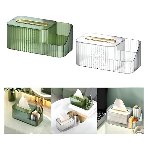 Generic - غطاء علبة مناديل زجاجية مستطيلة - حامل علبة مناديل ذهبية كلاسيكية، حامل مناديل وجه رائع لوضعه في خزانة الملابس أو الحمام أو طاولة جانبية أو مكتب منزلي (شفاف, 2 منظم)