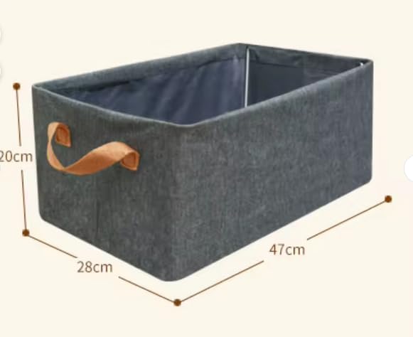 - الأبعاد المثالية: صندوق تخزين بمقاسات 47 سم طول × 28 سم عرض × 20 سم ارتفاع، مناسب للمساحات المتنوعة