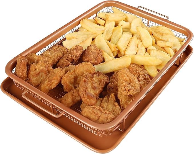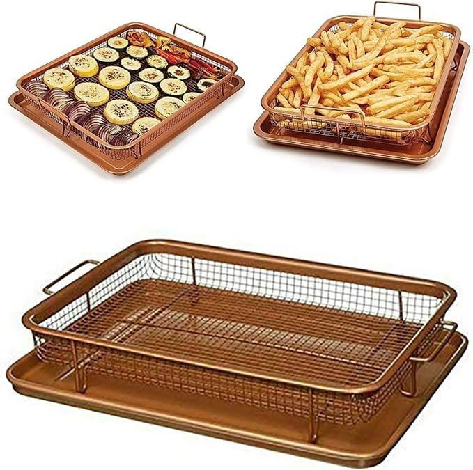 Generic - صينية فرن مستطيلة بشبكة داخلية وقاعدة تجميع خارجية، مناسبة للشوي والخبز وتحضير الأطعمة المقرمشة ، سهلة الاستخدام والتنظيف للاستخدام اليومي