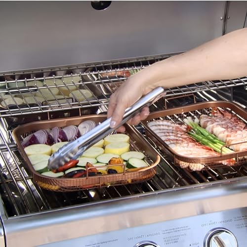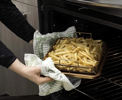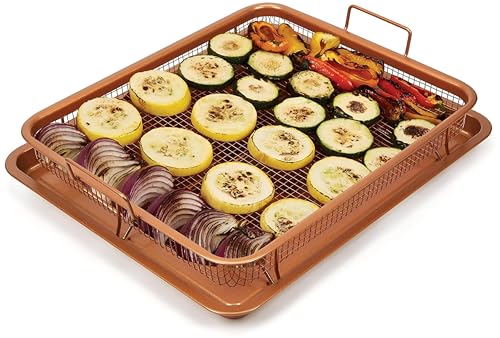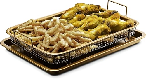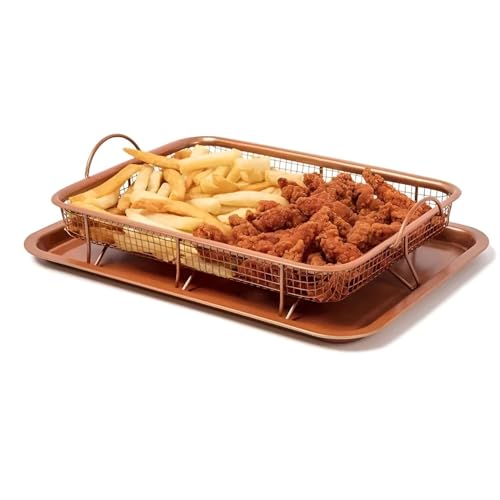 - تتضمن المجموعة صينية مقرمشة بلون نحاسي وسلة مطابقة، جديدة تمامًا وذات جودة عالية. تسمح السلة المطلية بالسيراميك للهواء بالدوران بحرية للطهي المتساوي، بينما تلتقط الصينية البقايا للحفاظ على نظافة الفرن. يعزز هذا التصميم المريح الراحة ويقلل من السعرات الحرارية والدهون في الوجبات.