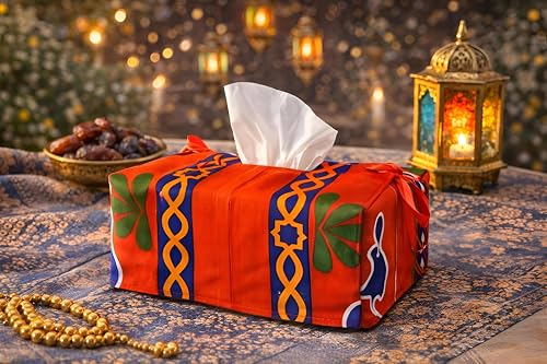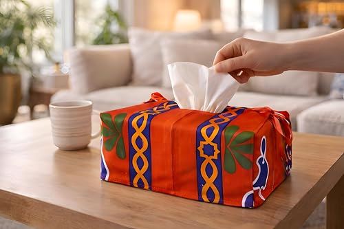 Generic - غطاء علبة مناديل مستطيل - غطاء مزخرف مصنوع يدويًا من باكستان، مزيج من القطن الناعم مع أنماط هندسية، لمسة أنيقة لمنزلك