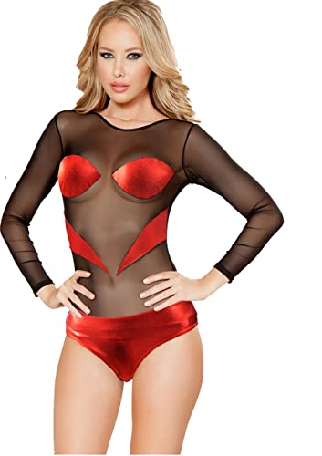 Generic - لانجيري بيبي دول قصير من الجلد، احمر واسود