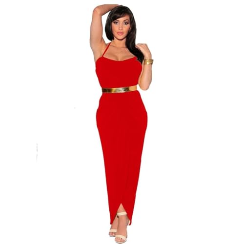 Generic - فستان لانجرى زبدة بحزام وسط لون احمر