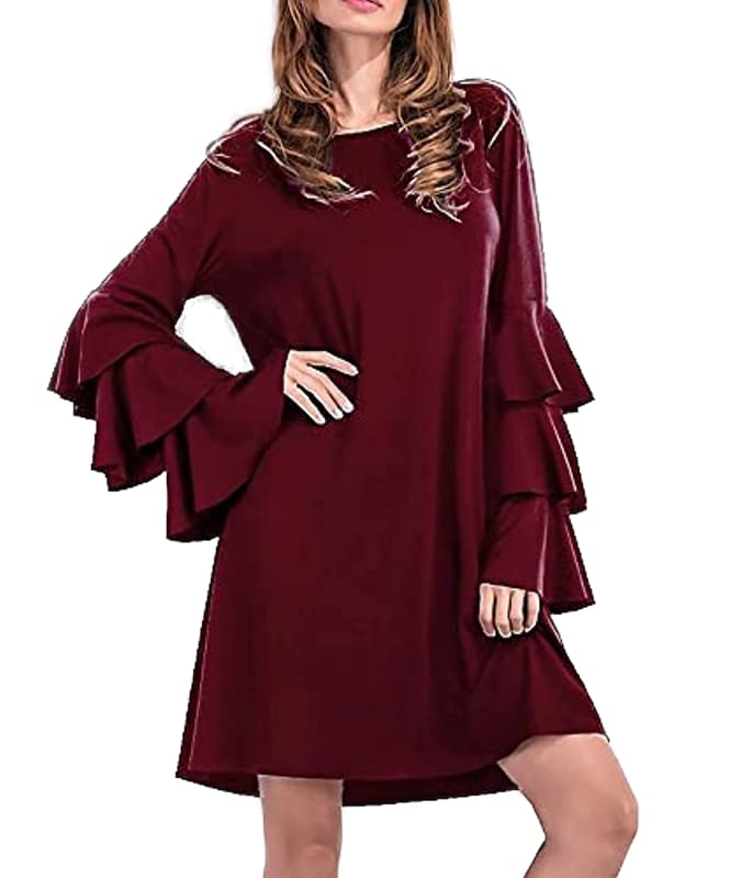 FG - فستان كاجوال قصير لون احمر نبيذي - قياس موحد للنساء