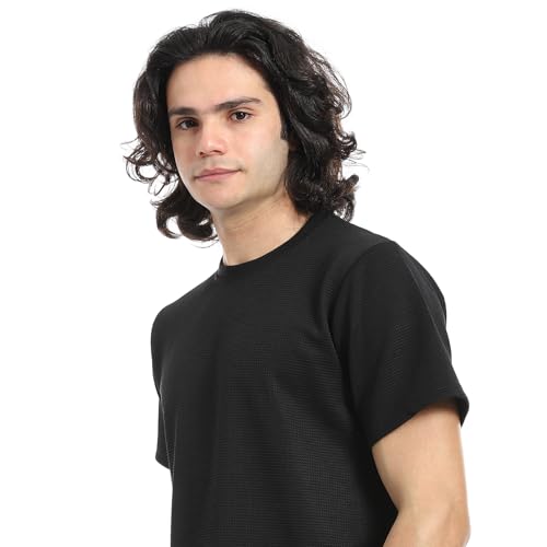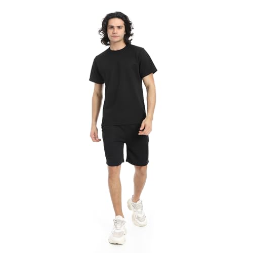 Red Circle - Red Circle Mens Pique Pattern Slip On T-Shirt And Shorts Set - Black Pique Pattern Slip On T Shirt And Shorts Set