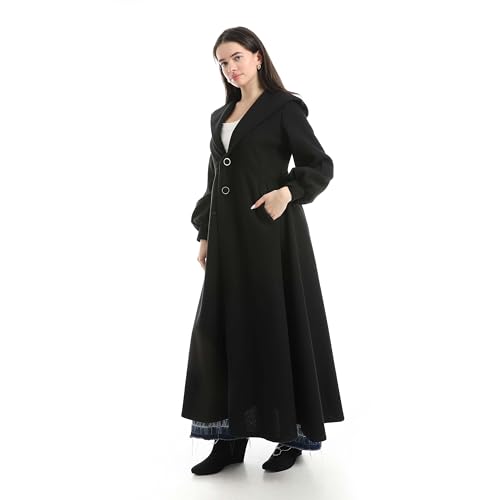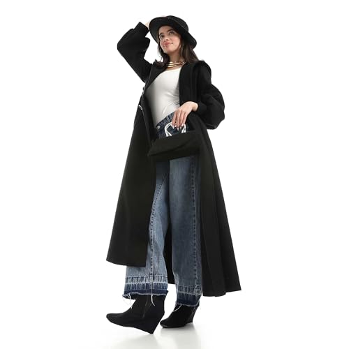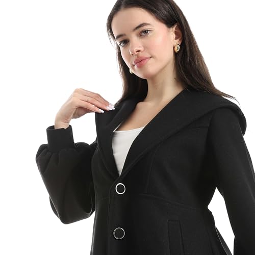 Red Circle - معطف طويل سادة بغطاء للراس وازرار مزدوجة للنساء من ريد سيركل
