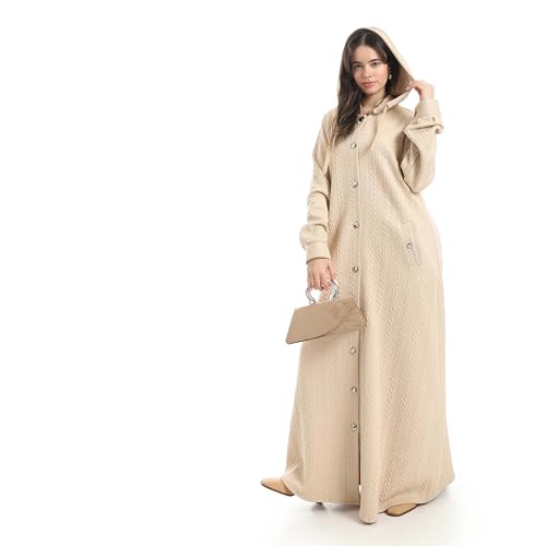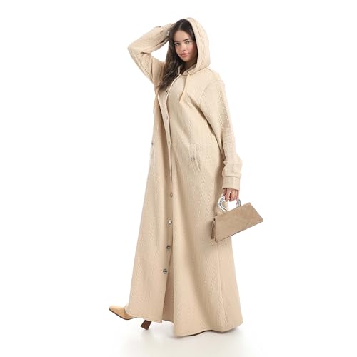 Red Circle - عباية مريحة بغطاء للرأس ونمط منقوش للنساء من ريد سيركل - عباية ليجين بيج