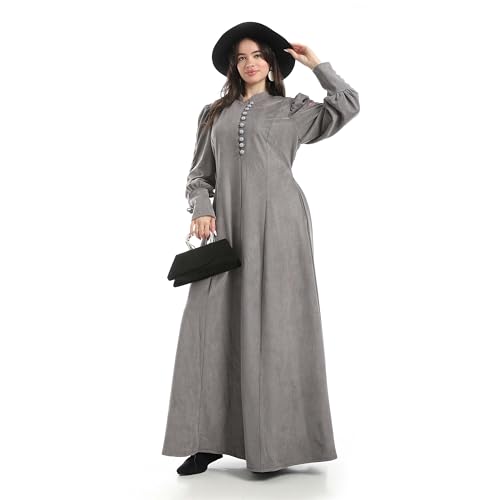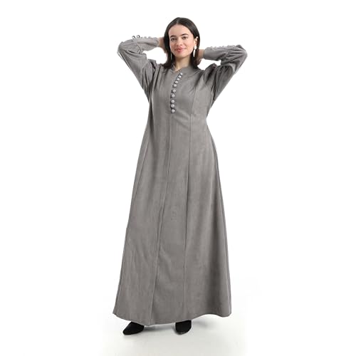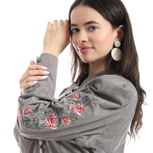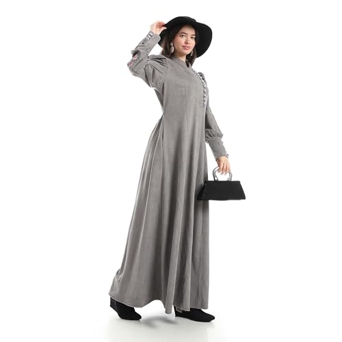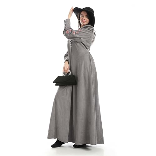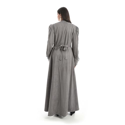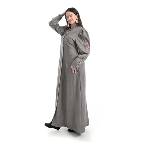 Red Circle - عباية شمواه فاخرة مطرزة باكمام بيشوب بلون رمادي للنساء من ريد سيركل