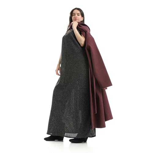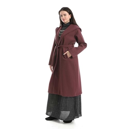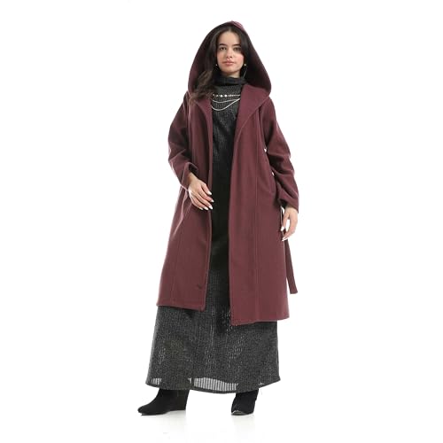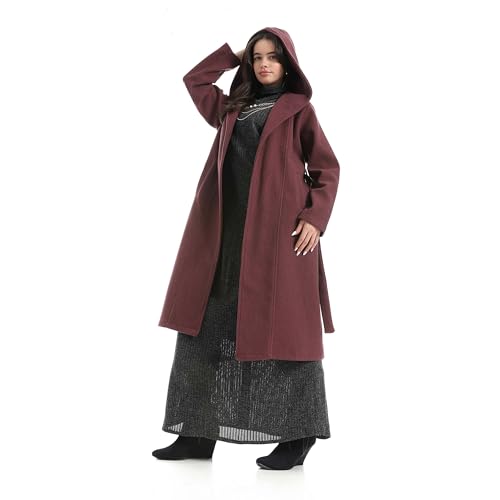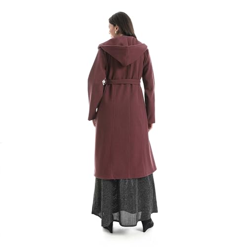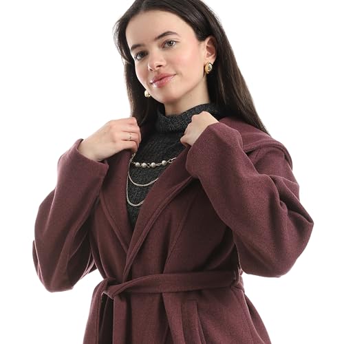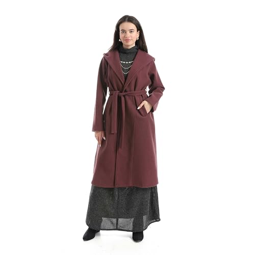 Red Circle - طقم معطف وفستان دافئ باكمام طويلة وحزام قابل للتعديل للنساء من ريد سيركل - معطف برقوقي وفحمي + بيسيك طويل