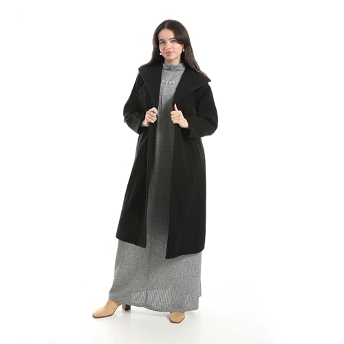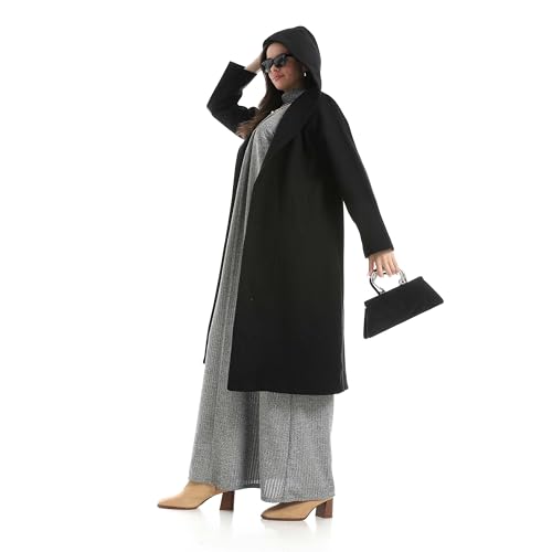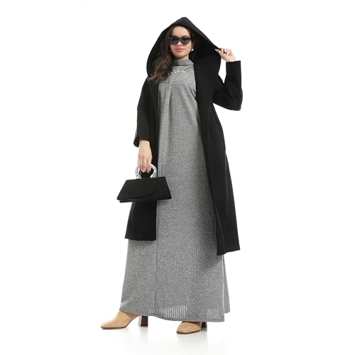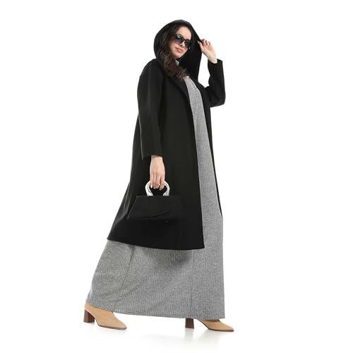 Red Circle - طقم فستان ومعطف سهل الارتداء بقصة عادية للنساء من ريد سيركل - معطف اسود ورمادي + بيسيك طويل