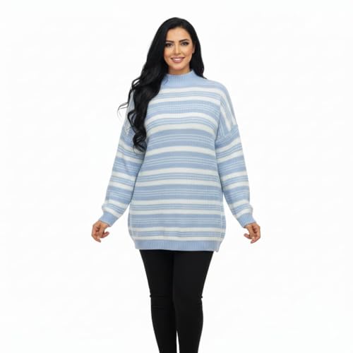 Red Circle - بلوفر منسوج مخطط كبير الحجم للنساء من ريد سيركل