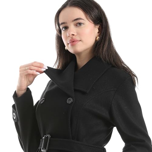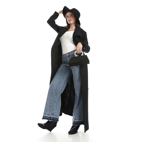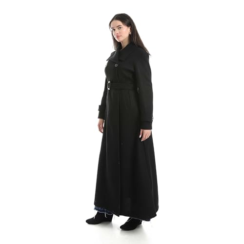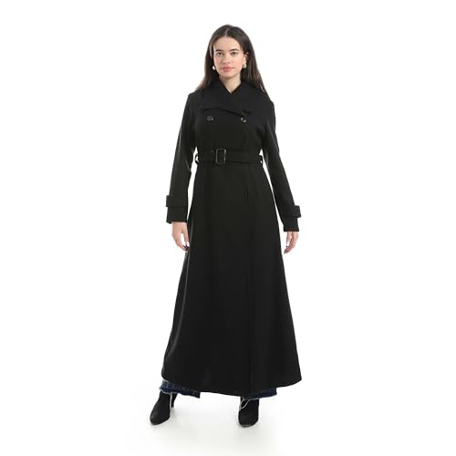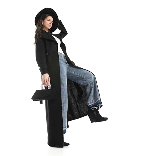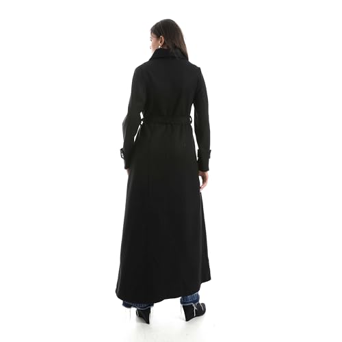 Red Circle - معطف طويل للنساء من ريد سيركل بفتحة واسعة وأزرار مزدوجة بلون اسود