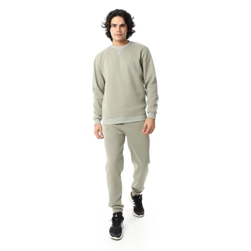 Red Cirlce - Mens Crew Neck With Elastic Ankle British Tracksuit Set - Light olive Crew Neck With Elastic Ankle British Tracksuit Set